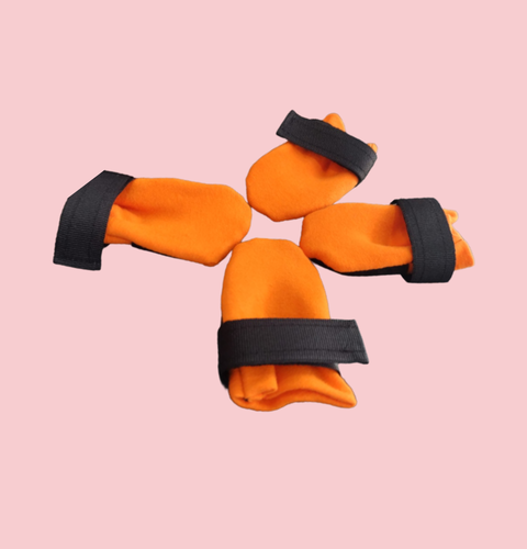 2- Como colocar o sapato no cachorro? 🦮 Logo antes do passeio, deite o cachorro no seu colo de barriga para cima, e coloque primeiro nas patas de trás e depois nas patas da frente. Coloque o sapato e aperte o velcro, para garantir que ele não sairá. Quando voltar do passeio, retire os sapatos e deixe-os respirar.